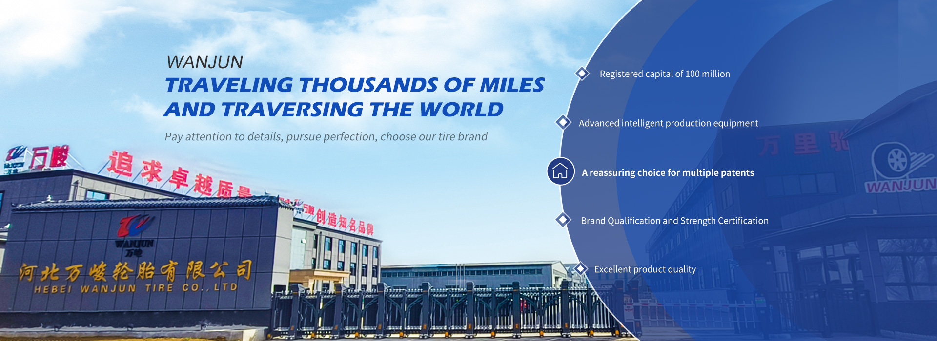 Wanjun Tire has introduced advanced intelligent production lines from home and abroad, focusing on high-end motorcycle tires, radial tires and other products. It has passed international authoritative certifications such as ISO19001, DOT, E-MARK, etc., and has solidified industry technical barriers with 16 patented technologies.